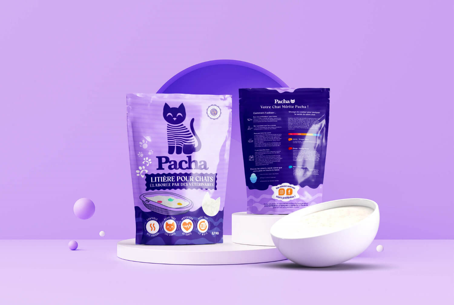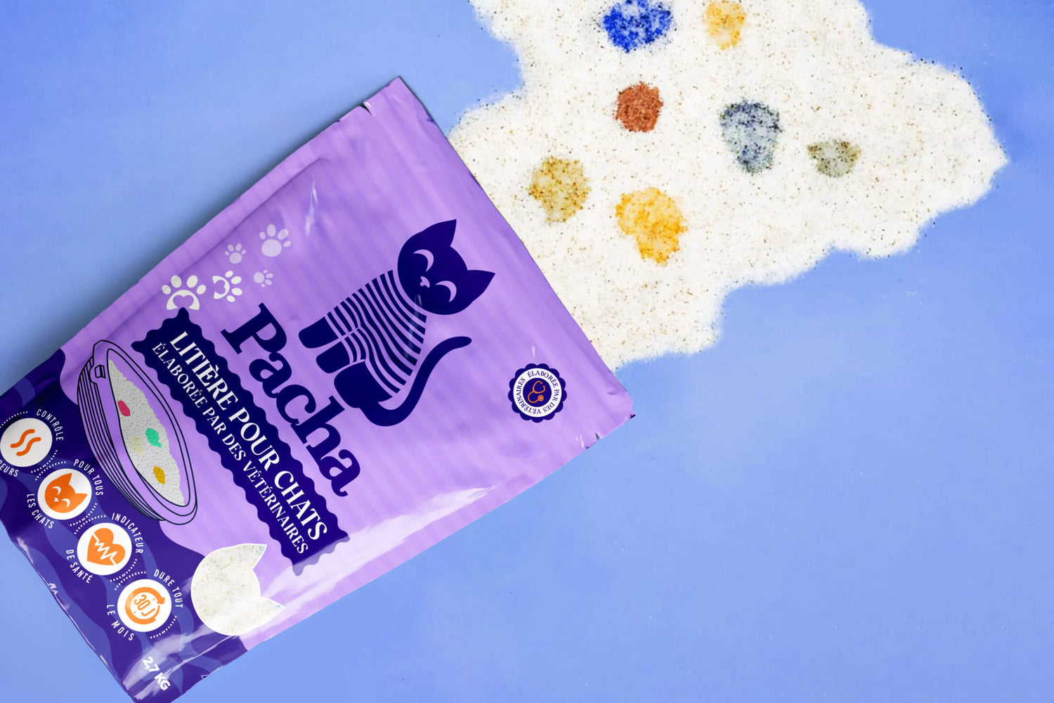 Seguite la salute del vostro gatto, indipendentemente dalla sua età, con la lettiera Pacha. Rileva i problemi di salute del gatto (analisi del pH, del sangue, ecc.) e cambia colore fin dal primo giorno di malattia.
